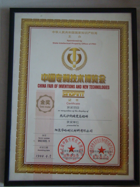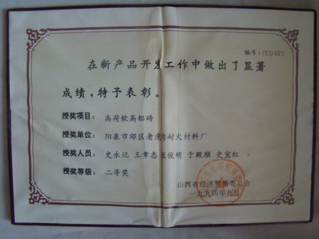 熱風(fēng)爐用低蠕變高鋁磚、高荷軟高鋁磚獲省科技進步二等獎,微膨脹高鋁磚列入火炬計劃項目,炭素焙燒爐用特種高鋁磚已批準國家專利